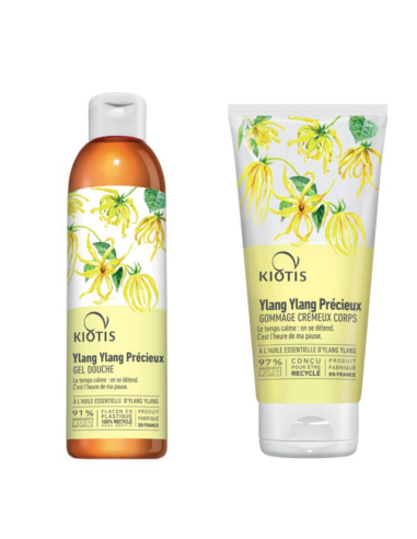 Esfoliante purificante dalla texture avvolgente e cremosa per una esfoliazione efficace che lascia la pelle morbida ed elastica + Bagnoschiuma cremoso con estratti naturali YLANG YLANG rilascia un profumo velluttuoso che vi trasporta in un bagno di fiori di Ylang Ylang + Olio Secco per corpo e capelli per una idratazione della pelle perfetta