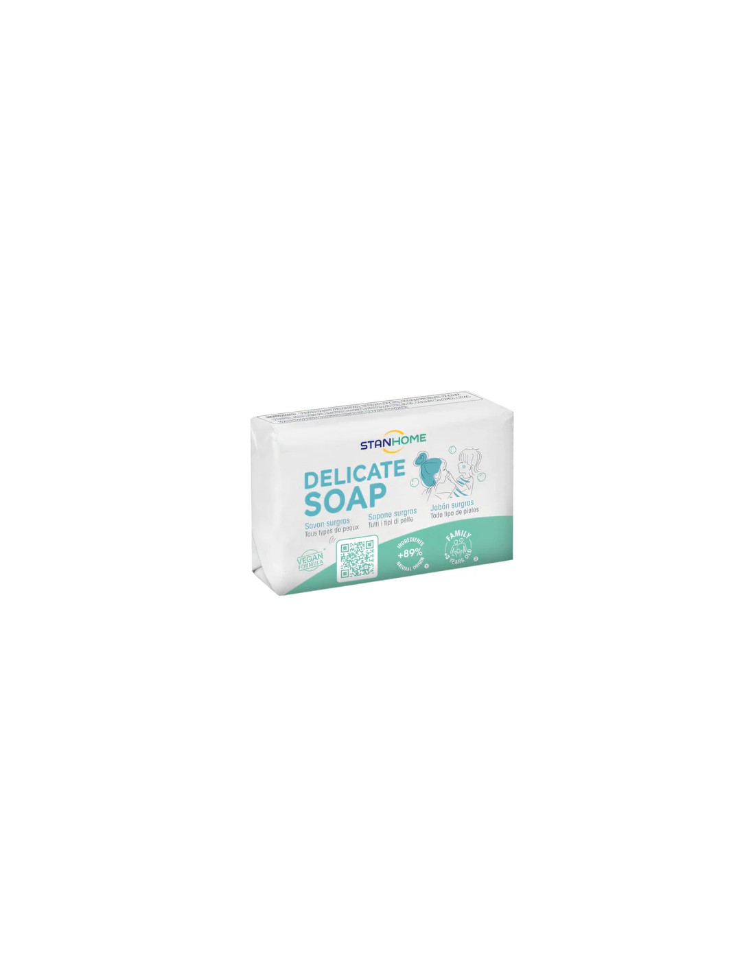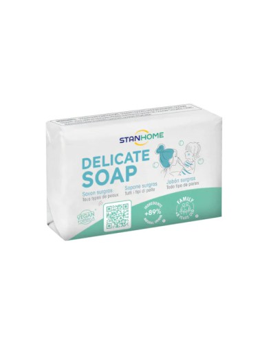Super nourishing Stanhome Solid Soap that gently cleanses the face, body and hands of the whole family. Perfect even in the shower. Vegan and Sulfate Free Formula
