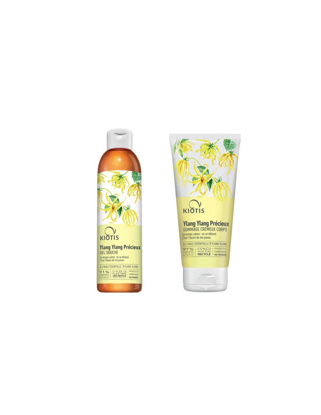 Esfoliante purificante dalla texture avvolgente e cremosa per una esfoliazione efficace che lascia la pelle morbida ed elastica + Bagnoschiuma cremoso con estratti naturali YLANG YLANG rilascia un profumo velluttuoso che vi trasporta in un bagno di fiori di Ylang Ylang